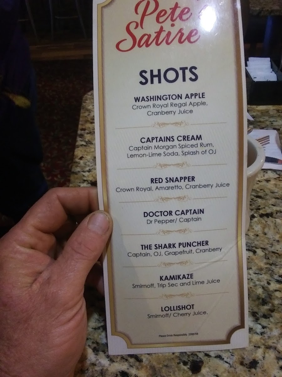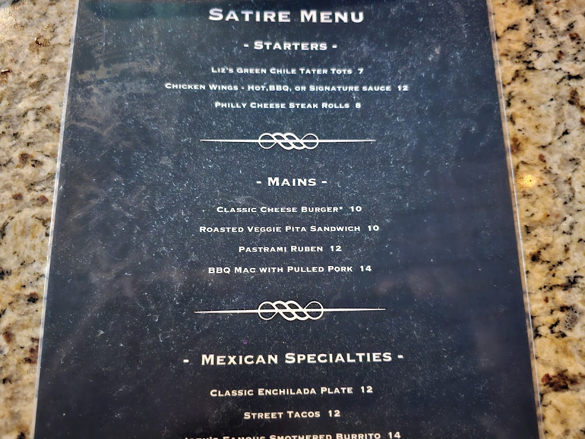 Pete's Satire Lounge Menu